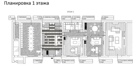 На 1 этаже выделенная зона руководства с переговорной, ресепшн и камином.