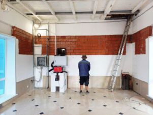 Здание теплое, двухэтажное, высота потолка первого этажа - 4 метра, высота потолка второго этажа - 3,6 метра. Высота здания - 7,6 метра. Размер здания 7,6м х 5,8м.