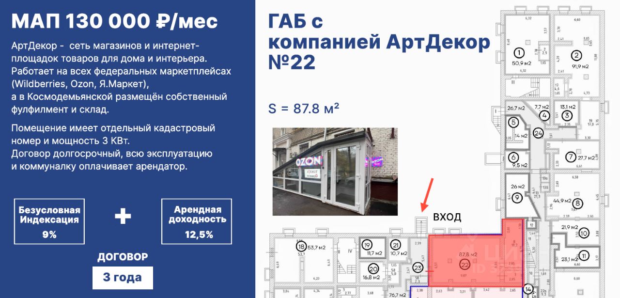 Прямая продажа ГАБ от собственника! Идеальная локация! Уникальное предложение - МАП 130 000! Арендатор интернет магазин - Дивная Ива.