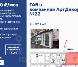Предлагаем Вашему вниманию ГАБ с помещением свободного назначения площадью 87.8 кв.м. Долгосрочный договор аренды.