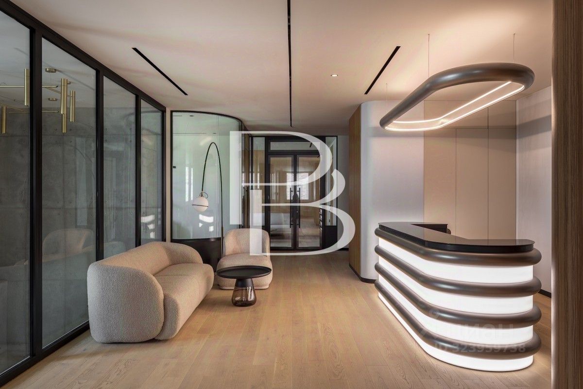Общая площадь 576,4 кв.м. Расположен на 2-м этаже, с отдельной входной группой на 1-м. Выполена высококачественная отделка, офис полностью укомплектован мебелью.