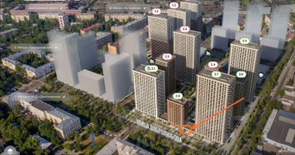 Объект расположен на первой линии домов в пешей доступности от станции метро Бутырская, рядом остановка общественного транспорта. Интенсивный автомобильный и пешеходный трафик, имеется парковка перед фасадом. В проекте ЖК 16 жилых корпусов высотой от 12 до 33 этажей, а также 2 детских сада и школа. Высокая плотность населения, при этом сам жилой комплекс заселён (наш корпус последний в ЖК). Также на улице Добролюбова будет построено 5 башен от застройщика Русич и новый ЖК от застройщика Крост.