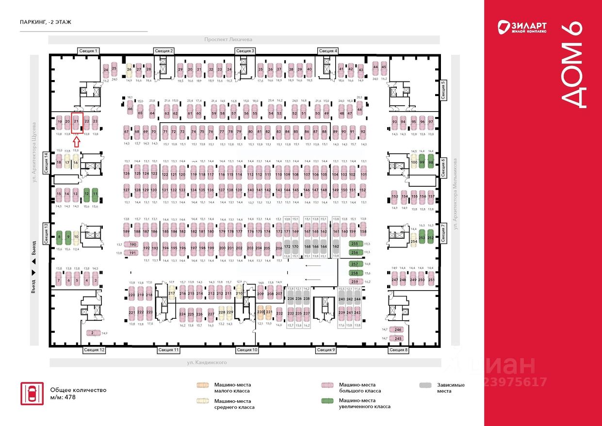 Продается отличное машиноместо на -2 этаже (в отличие от -1 этажа нет мусорокамер и заезд/выезд гораздо удобнее) в ЖК "Зиларт", Лот 6.