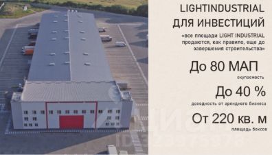 Все площади LIGHT INDUSTRIAL продаются, как правило, еще до завершения строительства. До 80 МАП окупаемость. До 40 % доходность от арендного бизнеса . От 180 кв. м до более 3 тысяч площадь боксов. Современный промышленный парк.