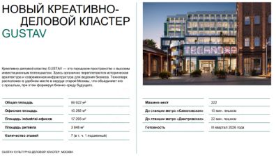 GUSTAV workplace — это городское пространство с высоким инвестиционным потенциалом. Здесь органично переплетаются историческая и современная архитектура, а также качественная инфраструктура для ведения бизнеса. Проект расположен в локации с удобными подъездными путями, формируя бизнес-среду будущего. Продаются офисцентр и три исторических здания. Пространство создано так, что работа в нем не просто эффективна, но и вдохновляет и приносит радость на ежедневной основе. От больших корпораций до стартапов — здесь все могут формировать комфортные условия с осознанным подходом и уважением к личным границам.
