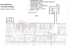 7 этаж целиком офис 975,4 кв.м - блок с кухней, своими с/у и душевой в кабинете руководителя, балконом.