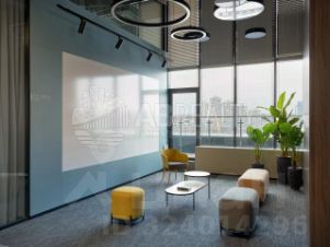 Панорамное остекление. Качественная офисная отделка. Высокие потолки.