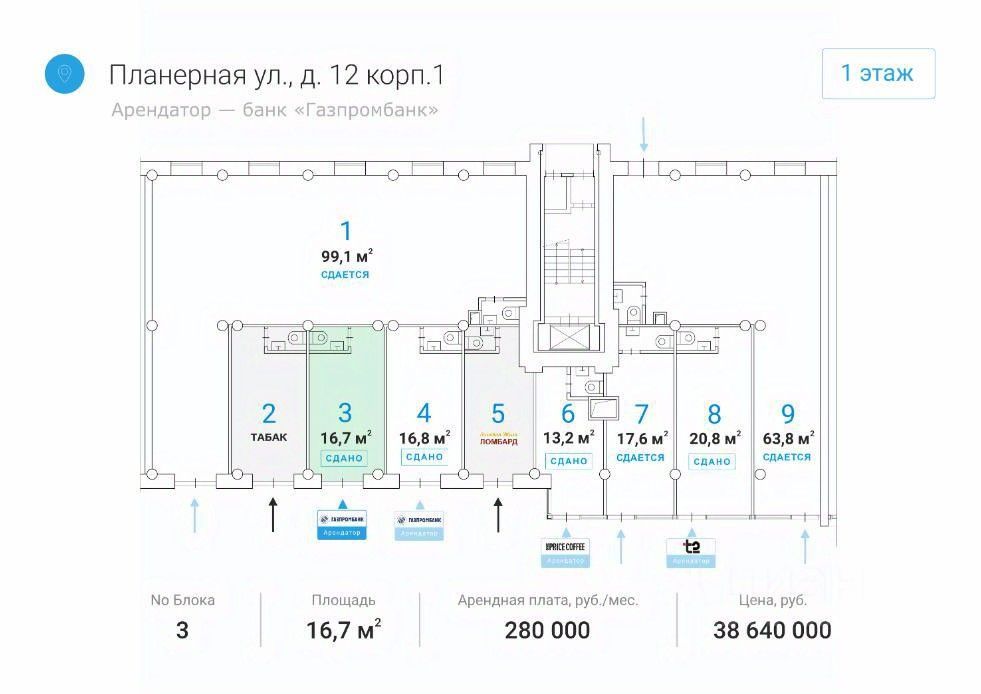 Лот: 37980. Помещение свободного назначения формата Street Retail в СЗАО Москвы. Шаговая доступность от ст. метро "Планерная" — 1 минута пешком. Отличная пешеходная и транспортная доступность. Помещение расположено в крупном сложившемся жилом районе с высокой плотностью застройки и развитой инфраструктурой.