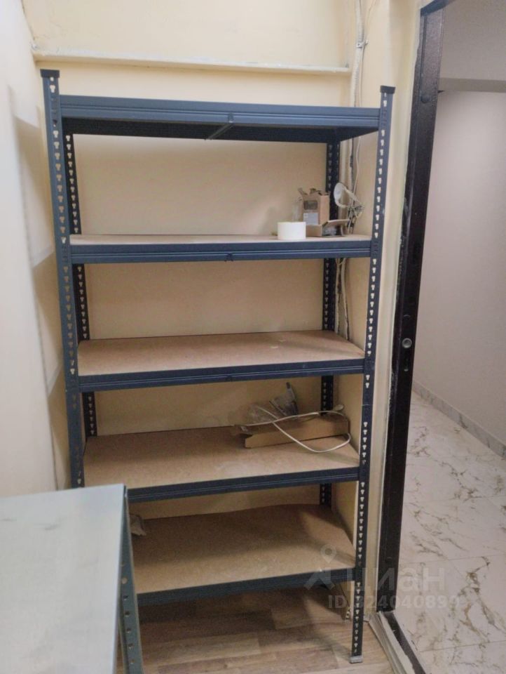 Сухая, с ремонтом. Есть стеллажи, железная дверь.