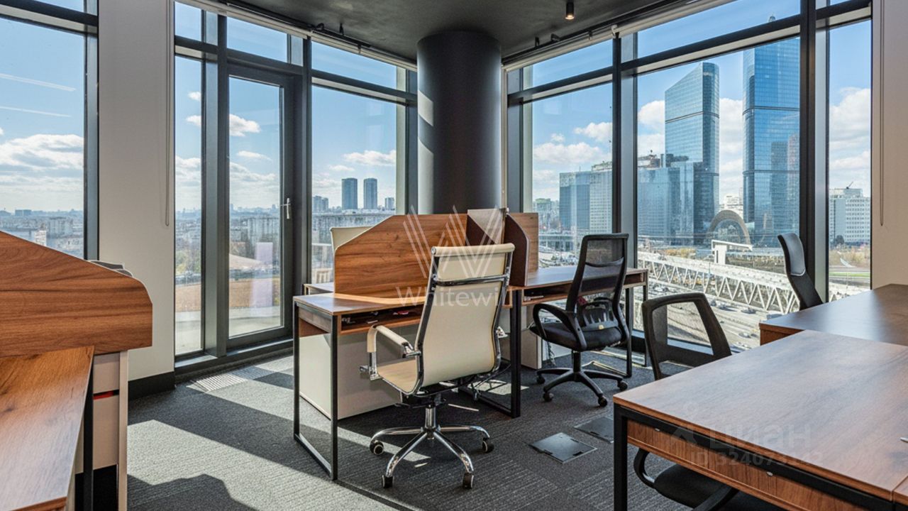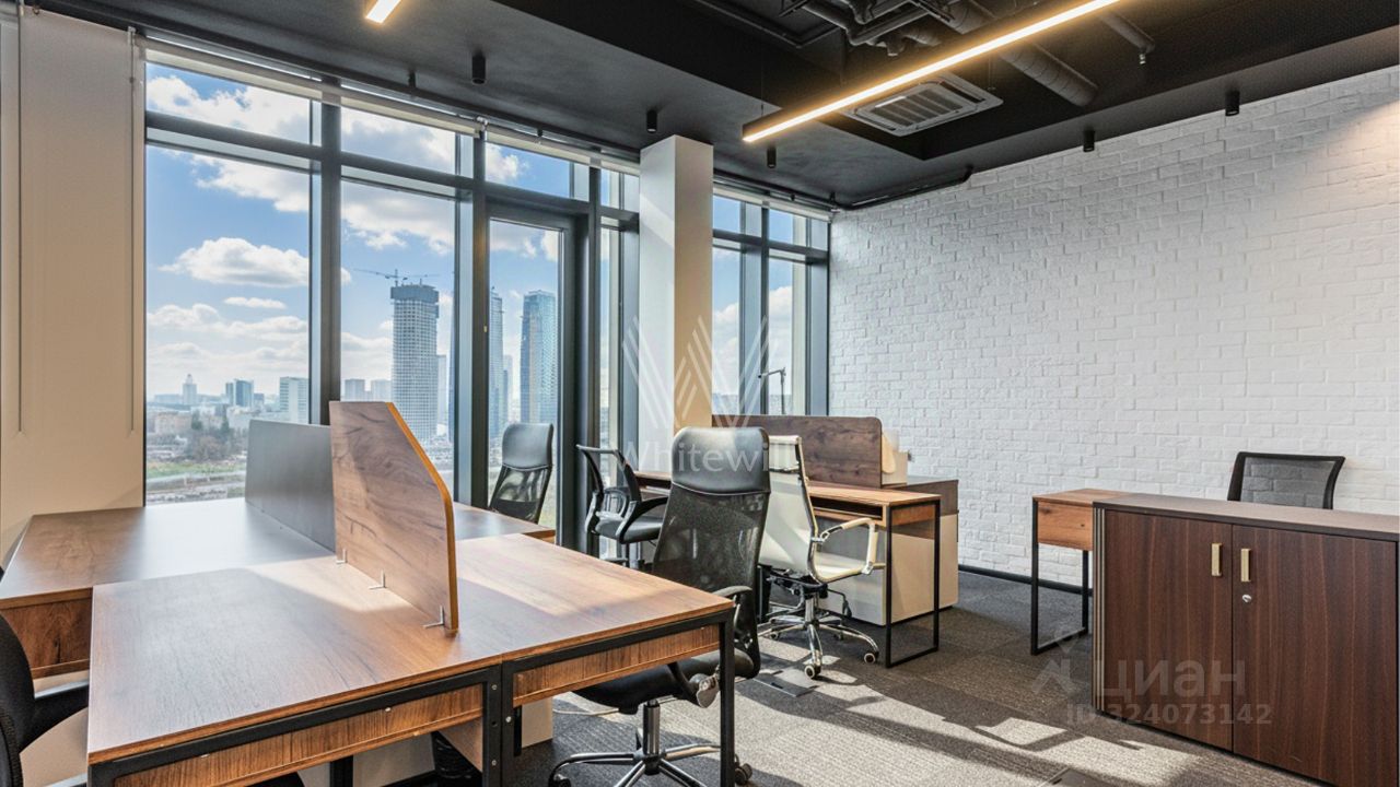 Офис площадью 113 м² расположен на пятнадцатом этаже в многофункциональном центре "IQ Квартал". В помещении с открытой планировкой выполнена отделка, оборудовано 15 рабочих мест. Предусмотрены открытая рабочая зона, кабинет руководителя, переговорная с видом на набережную Москвы-реки, зона ресепшн с кофе-поинтом, гардеробная, два санузла с душем. Установлены системы приточно-вытяжной вентиляции и центрального кондиционирования. Вход осуществляется через общее лобби в здании по пропускам.