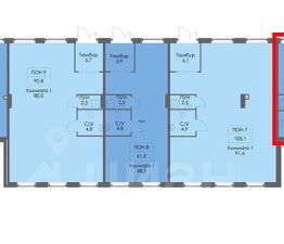 Площадь — 66,5 м², расположено на первом этаже 24-этажного дома.