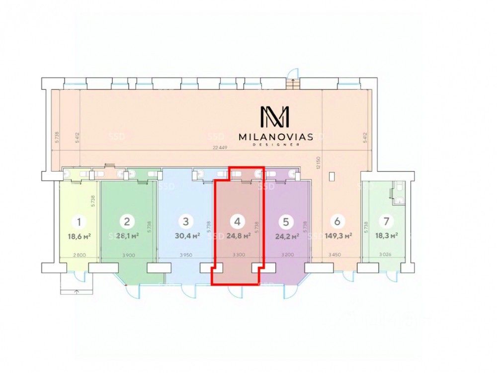 Технические характеристики: предлагаемая площадь - 24,8 кв.м. Витринное остекление. Высота потолков - 3,3 м. Электрическая мощность - 30кВт. Центральные коммуникации - водопровод, канализация, электричество, отопление.