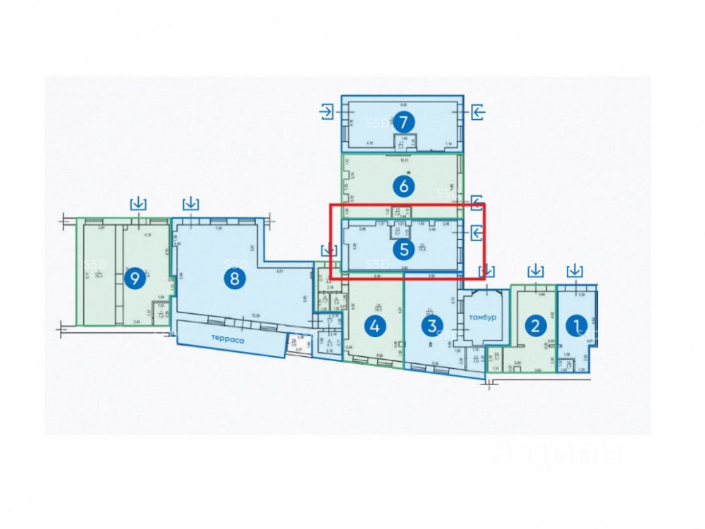 Общая площадь - 42,1 м². 15 кВт.Отдельный вход. Свободная планировка. Мокрая точка. Без отделки. Высота потолков 4 м.