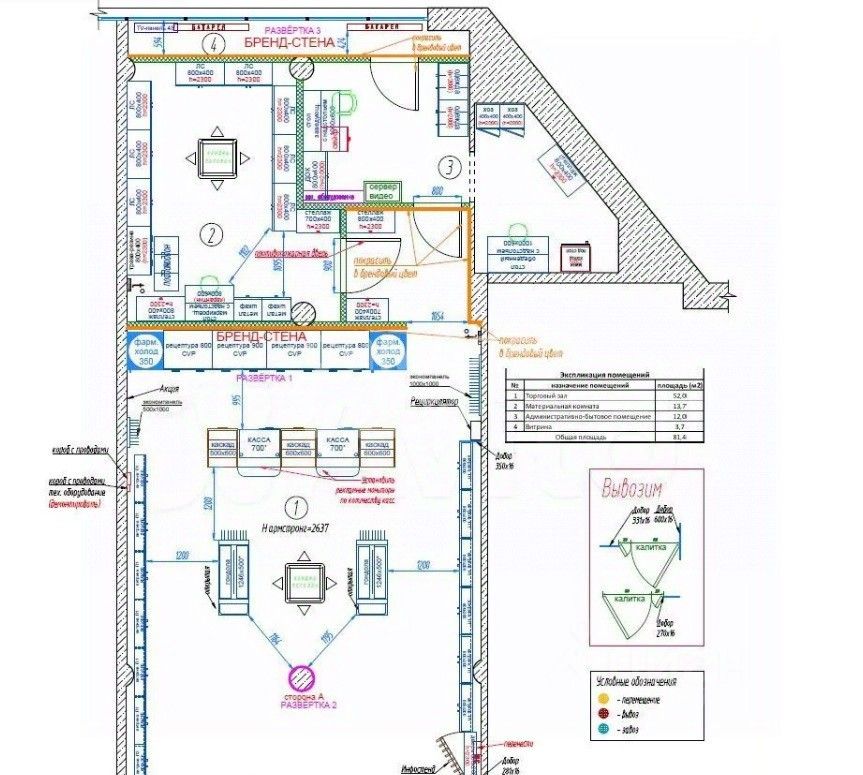 Площадь — 80,8 кв. м (торговый зал и склад).