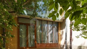 Перед одной из пяти фасадных витрин, выходящих на уютный Еропкинский переулок, расположен цветущий палисадник, другие окна обращены в тихий дворик, перед ними также разбит небольшой садик.