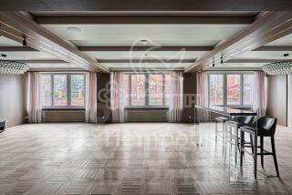 Окна: массив лиственницы с тройным изолированным остеклением. Фурнитура Siegenia (Германия). Люстры (Бельгия), паркет (Италия), подоконники - мрамор мэджик браун (Италия), батареи (Германия).