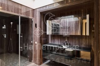 Стеновые панели из сукупиры (производство Австрия), двери Longhi (Италия), мебель и сантехника в санузлах и хамам - Antonio Lupi.