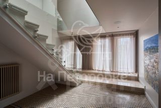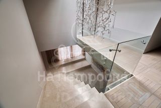Лестница наверх из мрамора (Италия) и стекла.