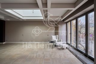 Окна: массив лиственницы с тройным изолированным остеклением. Фурнитура Siegenia (Германия). Люстры (Бельгия), паркет (Италия), подоконники - мрамор Magic brown (Италия), батареи (Германия).