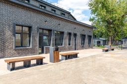 Отделка фасадов выполнена панелями с имитацией клинкерного кирпича. Дополнительно на территории организованы зоны отдыха на свежем воздухе, также дополнительно имеется возможность для организации летних веранд и кафе.