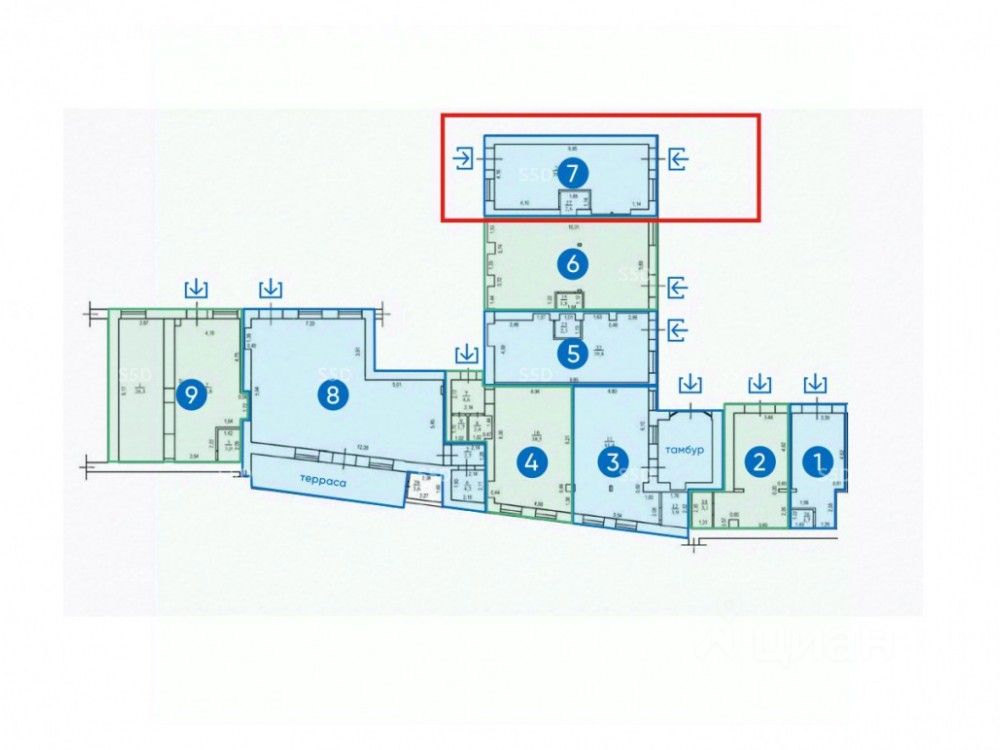 Общая площадь - 41,8 м². 15 кВт. Отдельный вход. Свободная планировка. Мокрая точка. Без отделки. Высота потолков 4 м.