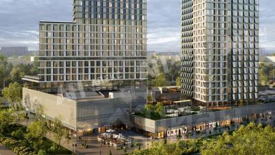 На первых этажах торговая галерея с ресторанами, фитнес-центром, магазинами, банками и аптеками