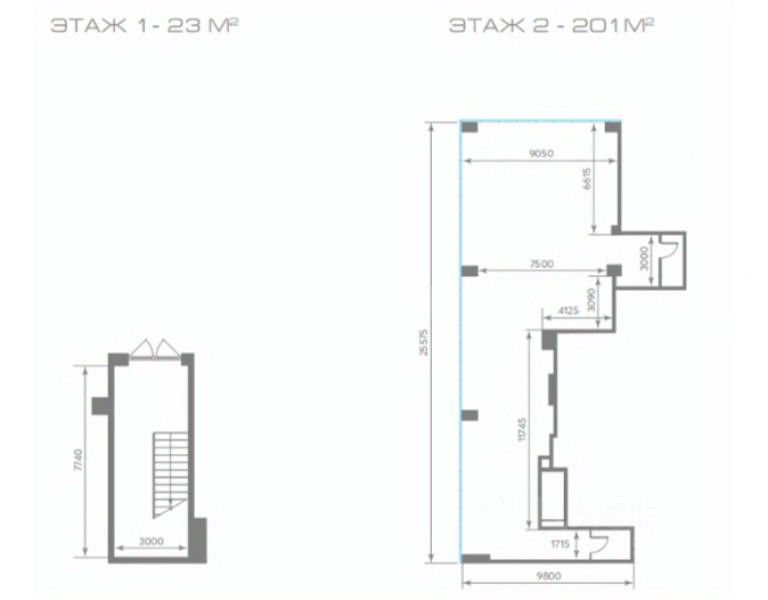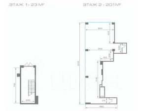 На 1 эт располагается входная группа - 23 м2, включая лестничный холл, второй этаж занимает офис площадью 201м2. Высота потолков 3.5м-4.0м.