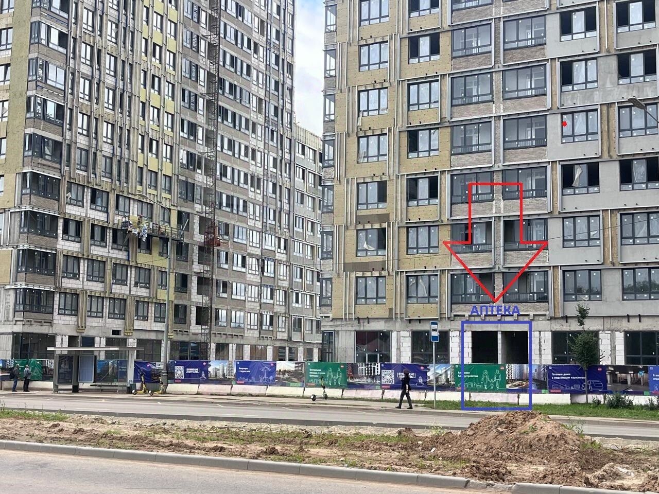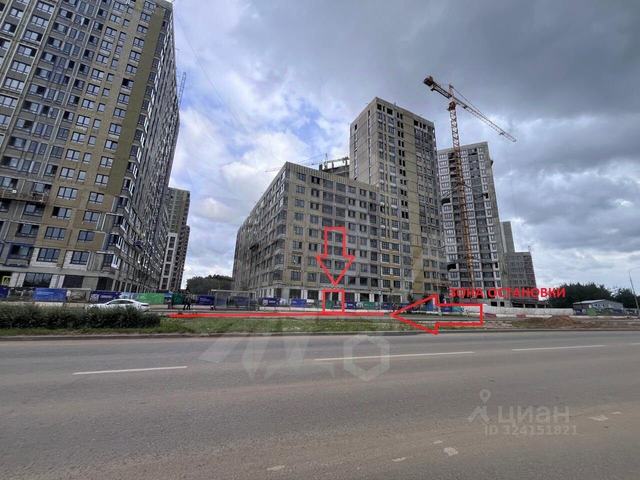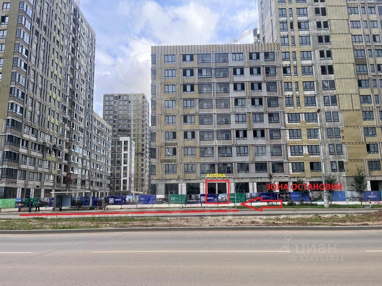 Дорога с интeнсивным движeниeм. Жители, не автомобилисты пользуются общественным транспортом до метро, автобусы ходят редко, в районе остановок люди находятся всегда, что придает ценность помещений на остановке.
