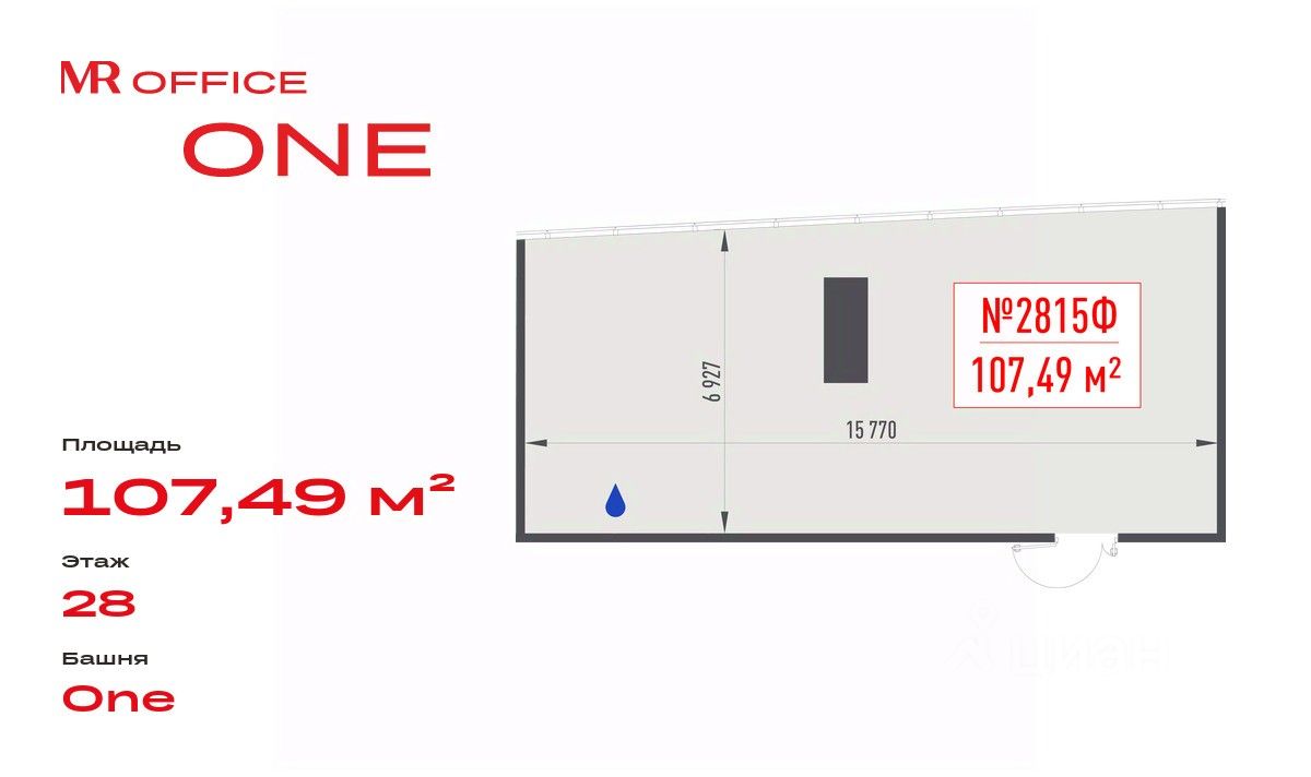 Продается офисное помещение 107.49 м² на 28 этаже в новом небоскребе класса Prime — БЦ ONE от MR Office.