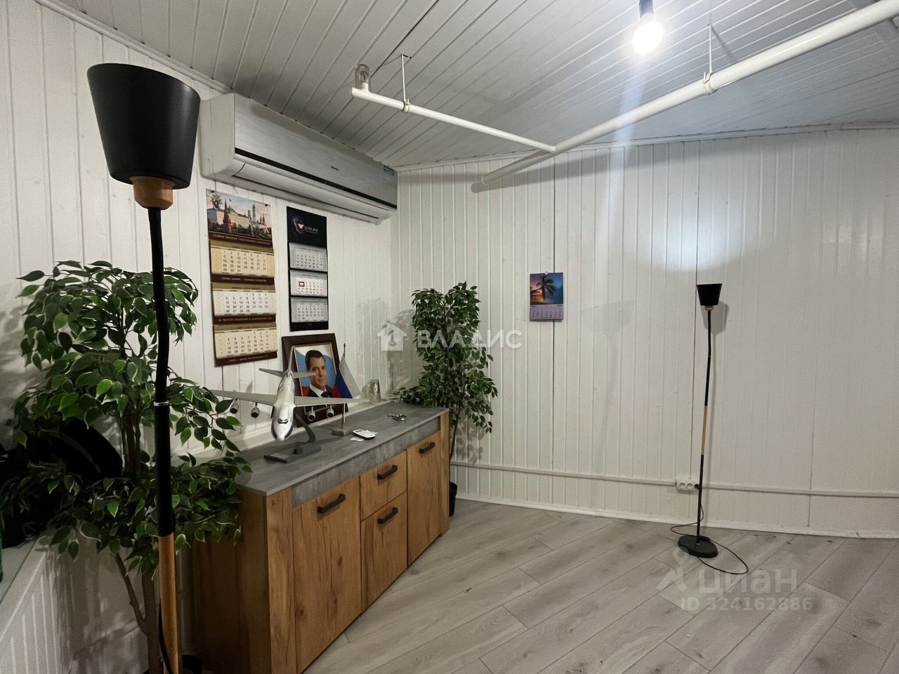 В помещении окна поворотно-откидные, ламинат, стены и пол утеплены. На стенах вагонка. Есть мебель и кондиционер.