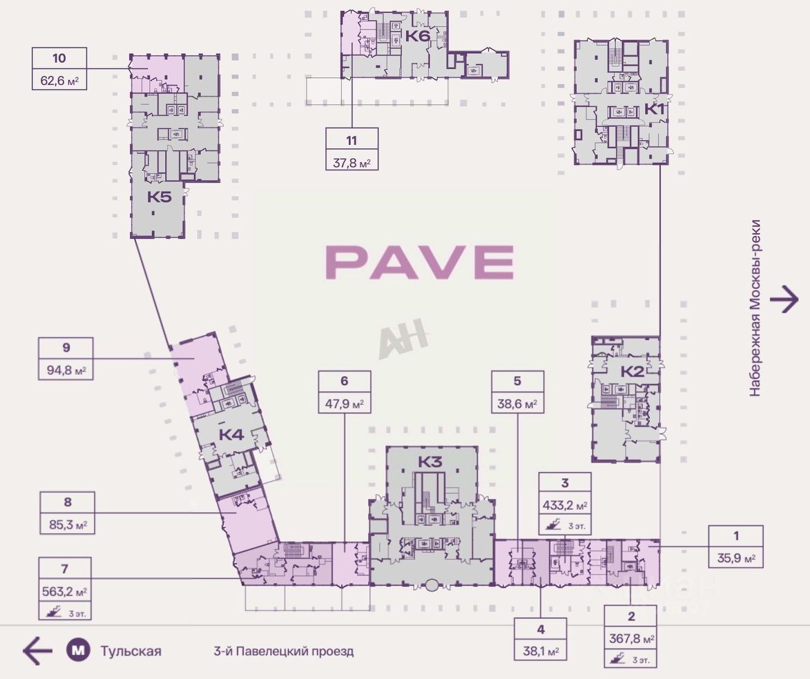 Жилой комплекс обеспечен постоянным потоком посетителей: на его территории проживает 1 300 жителей, а в десятиминутной доступности — 16 500 жителей. Расположенный в историческом пространстве Москвы, район Павелецкой сегодня является зоной активного роста и развития, что создает благоприятные условия для ведения бизнеса.