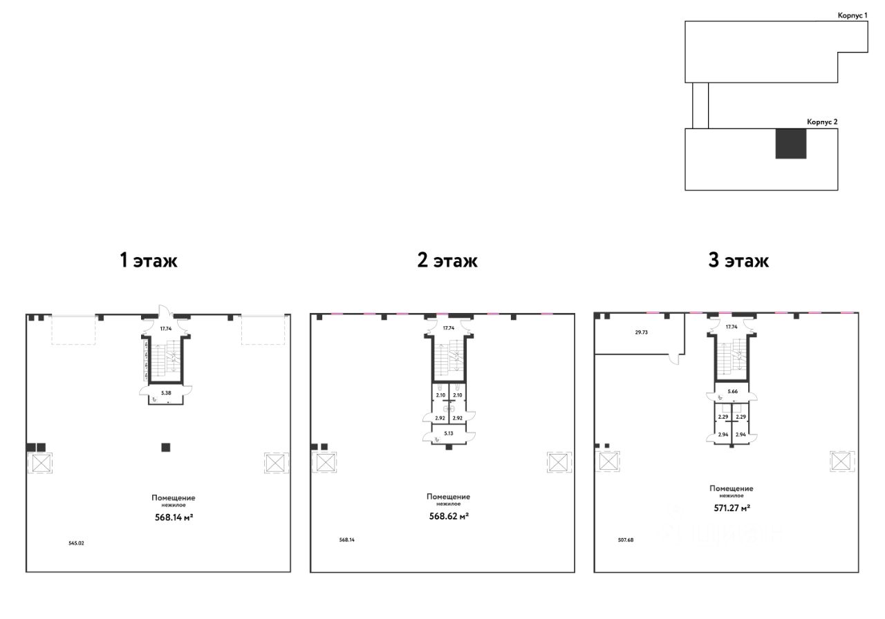 - Площади от 1 627 м² до целого здания 36 277 м².