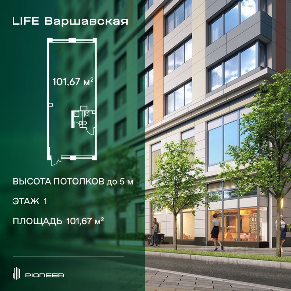 Продается ПОМЕЩЕНИЕ СВОБОДНОГО НАЗНАЧЕНИЯ площадью 101.67 м² в ЖК "LIFE Варшавская", отдельный вход с фасада, шаговая доступность от метро Варшавская, помещение расположено в Корпусе 6, интенсивный трафик, первая линия домов. Расчетное количество жителей жилого комплекса 15 000 человек, охват района 70 000 человек, активно строящийся район Москвы.