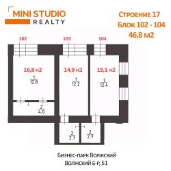 Идеально для бизнеса - блок из 3-х помещений (102,103,104 на плане). Можно организовать торговую точку, кафе, кальянную и т.д.