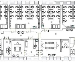 Гибкая планировка сочетание open space и кабинетов, возможна адаптация под стандарты нового владельца.