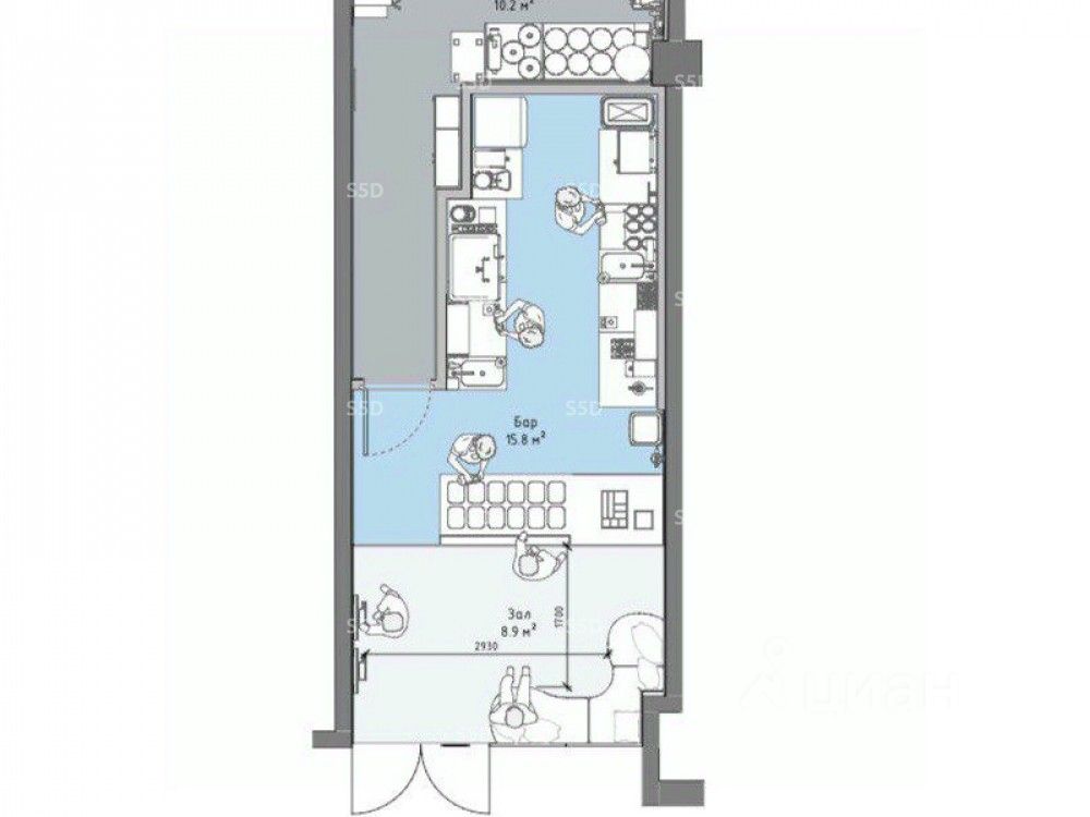 Торговое помещение в БЦ на 1 этаже административного 7 этажного здания., Площадь 35 кв.м. Помещение правильной прямоугольной формы.