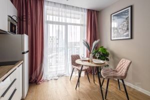 Помещение выполнено в качественном дизайнерском ремонте и полностью оснащено всей необходимой мебелью. Высота потолков 2.9 метра создает ощущение пространства и комфорт. Окна выходят во двор, обеспечивая дополнительную тишину и спокойствие, что делает данный объект привлекательным для арендаторов, стремящихся к уединению и отдыху.