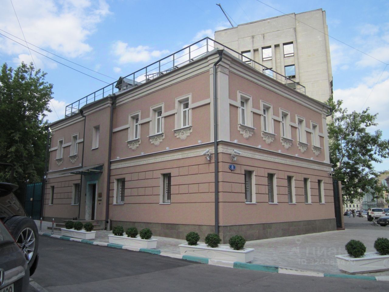 Презентабельный офисный особняк состоит из 2-ух этажей и подвала. Внешний фасад здания отделан мраморной крошкой. Подвал - полноценный этаж со всеми центральными коммуникациями. Земельный участок огорожен и вымощен гранитной брусчаткой.