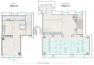 Арт. 126592171 ГАБ - общая площадь 189, 5 м2 - 1 этаж (68, 9 м2), антресоль (120, 6 м2)
