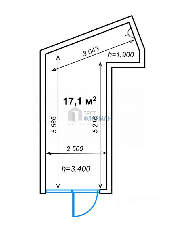 Технические характеристики: Общая площадь 17, 1 м2. Высота потолков 3, 7 м