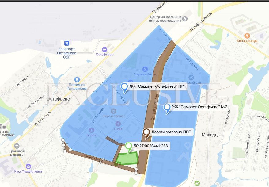 Локация: Участок в зоне активного развития — инвестиционный потенциал и готовый трафик от жилого комплекса Самолет Остафьево. Удобные подъезды с трёх сторон: Со стороны ЖК "Самолёт Остафьево" (доступ для клиентов и сотрудников) С Остафьевского шоссе (логистика и грузовой транспорт) Дополнительный въезд с второстепенной дороги (гибкость планировки).