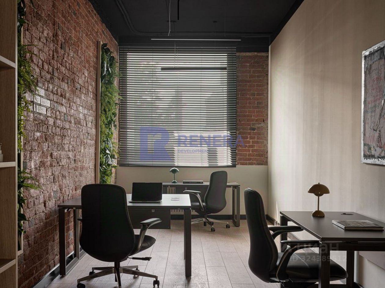 На этаже также расположено 20 офисов и зоны общего пользования: просторный лаунж с мебелью премиум-класса, переговорная с шумоизоляцией, современная кухня, кофе-поинт, санузлы.