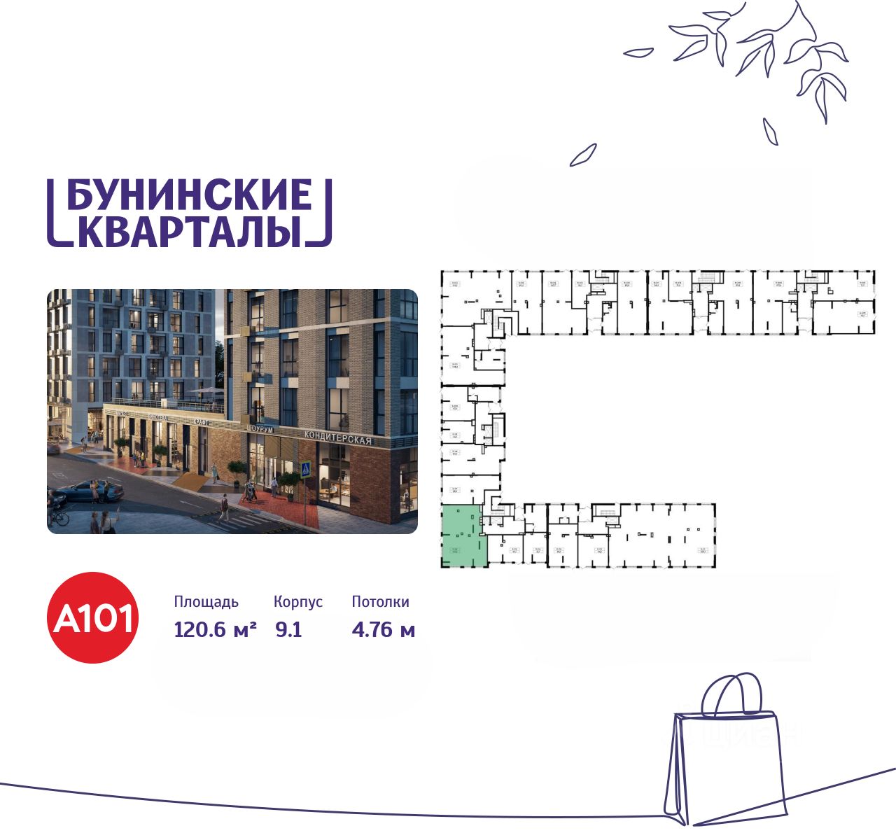 Продается торговое помещение площадью 120.60. на 1-м этаже ЖК "Бунинские кварталы".