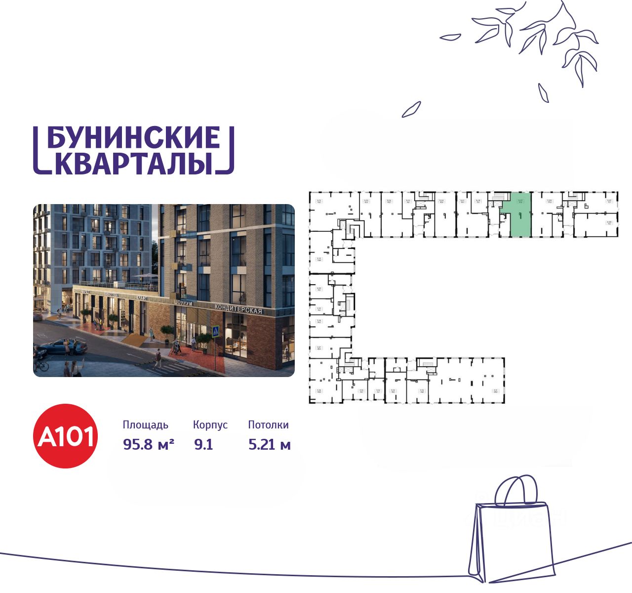 Продается торговое помещение площадью 95.80. на 1-м этаже ЖК "Бунинские кварталы".