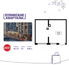 Продается торговое помещение площадью 44.70. на 1-м этаже ЖК "Бунинские кварталы".