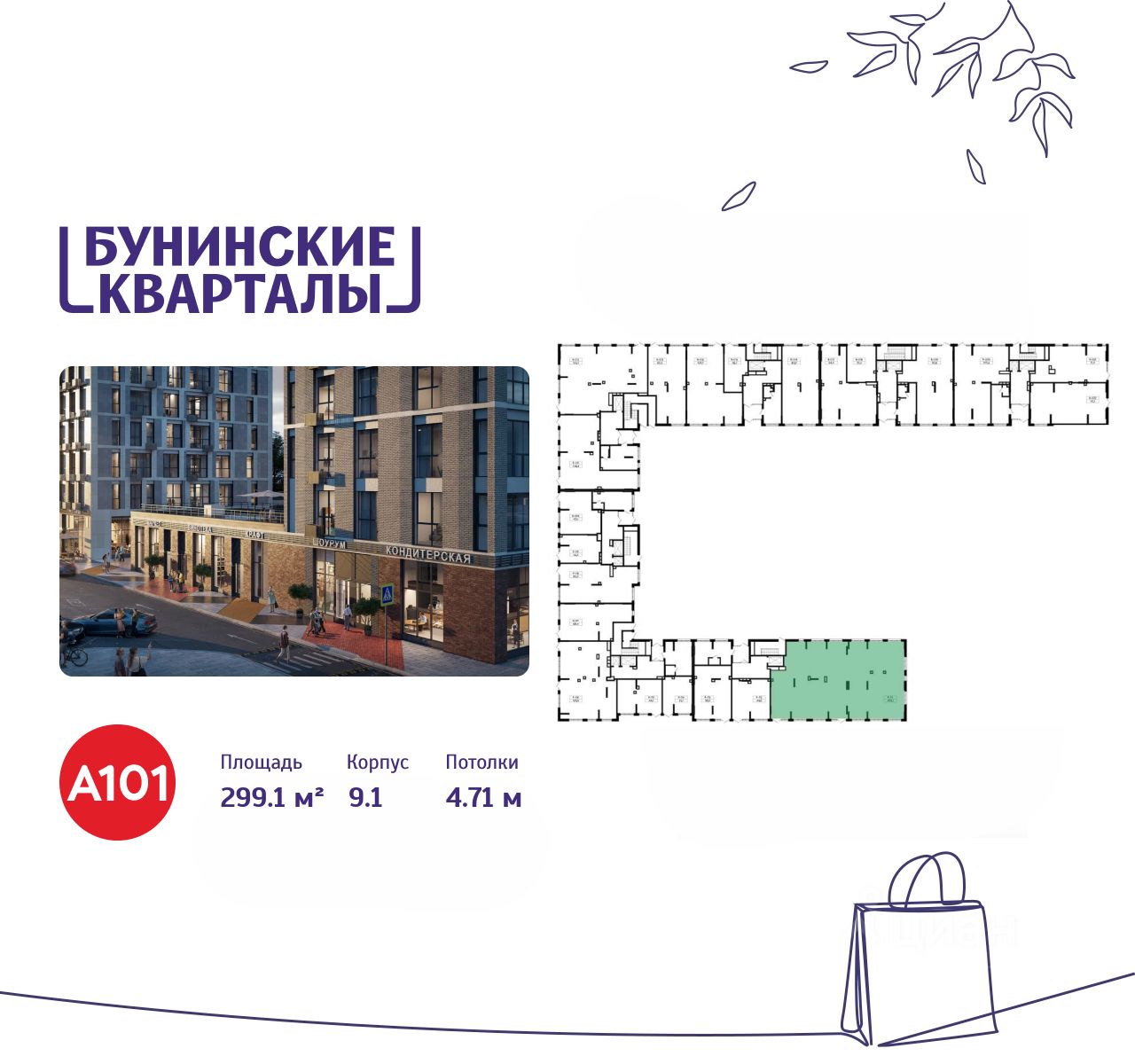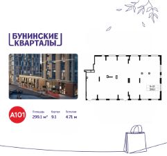Продается торговое помещение площадью 299.10. на 1-м этаже ЖК "Бунинские кварталы".