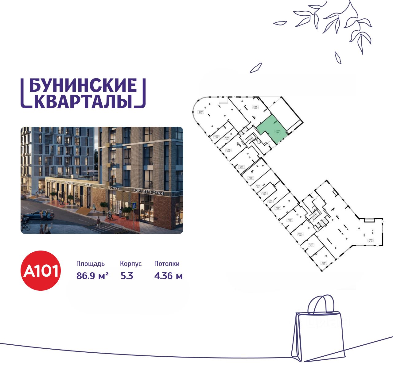 Продается торговое помещение площадью 86.90. на 1-м этаже ЖК "Бунинские кварталы".