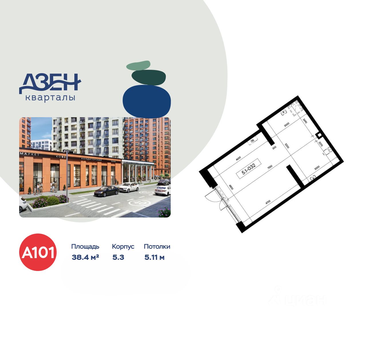 Продается торговое помещение площадью 38.40. на 1-м этаже ЖК "Дзен-кварталы".