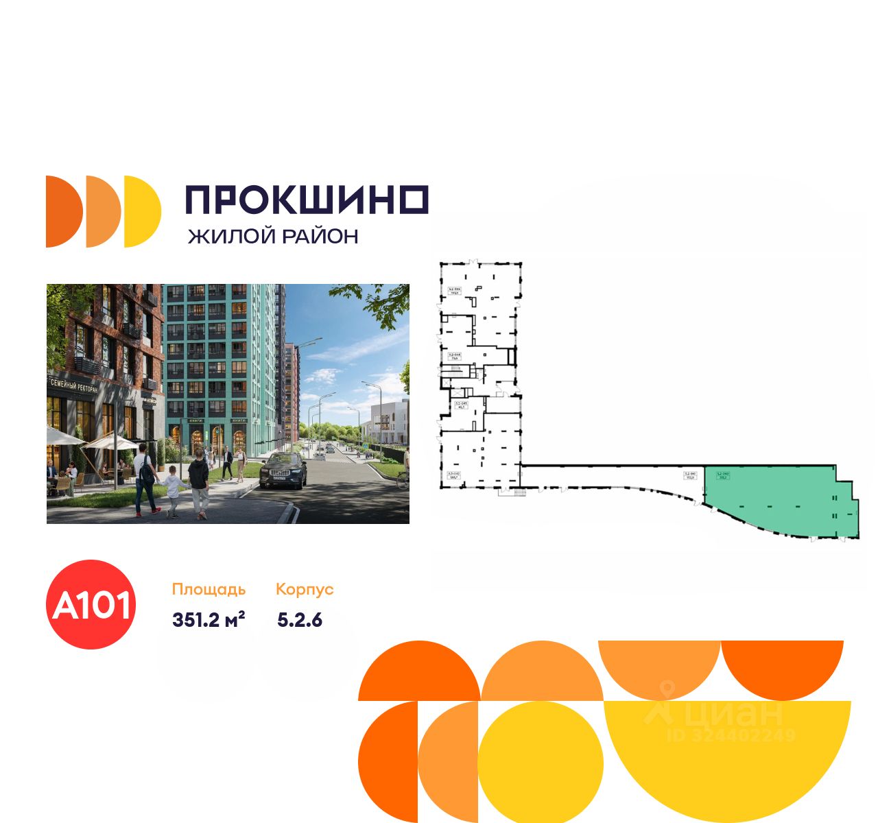 Продается торговое помещение площадью 351.20. на 1-м этаже ЖК "Прокшино".