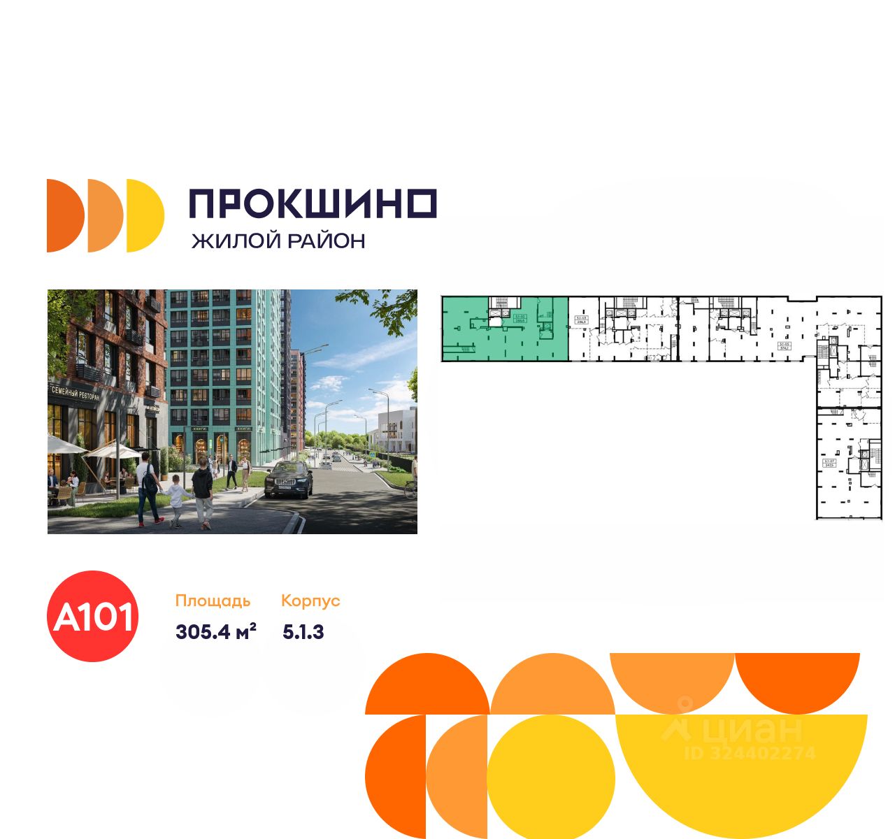 Продается торговое помещение площадью 305.40. на -1-м этаже ЖК "Прокшино".